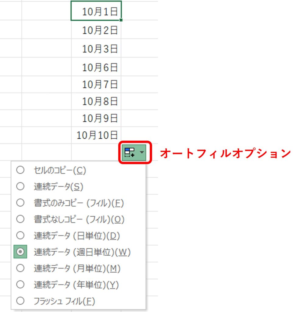 オートフィルオプションの表示の仕方について、解説しました。