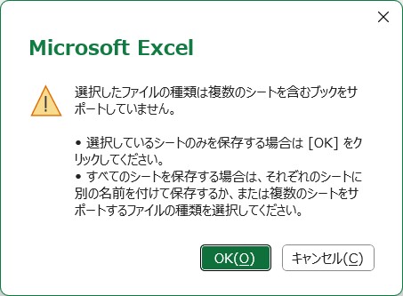 元のExcelが複数シートだった場合、以下の様なダイアログが表示されるので、「OK」ボタンをクリック。