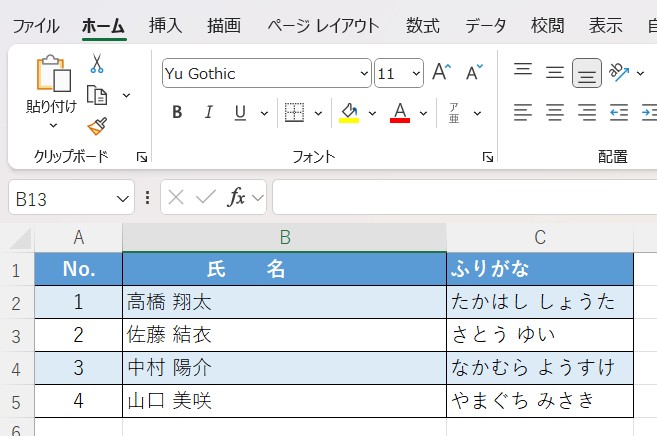 No.,氏名,ふりがな