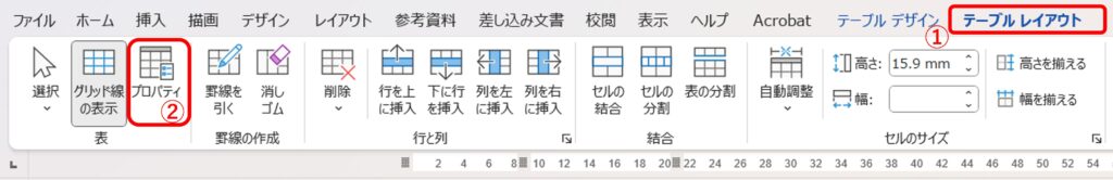 ※表を右クリック>「表のプロパティ…」からも開くことが出来ます。