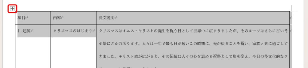 表の一番上に行って、十字のアイコンをクリックし、表を全選択する。
